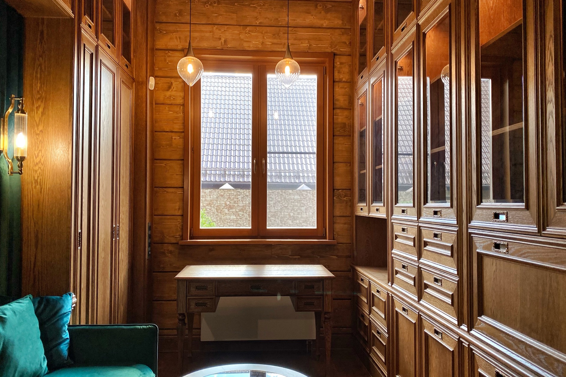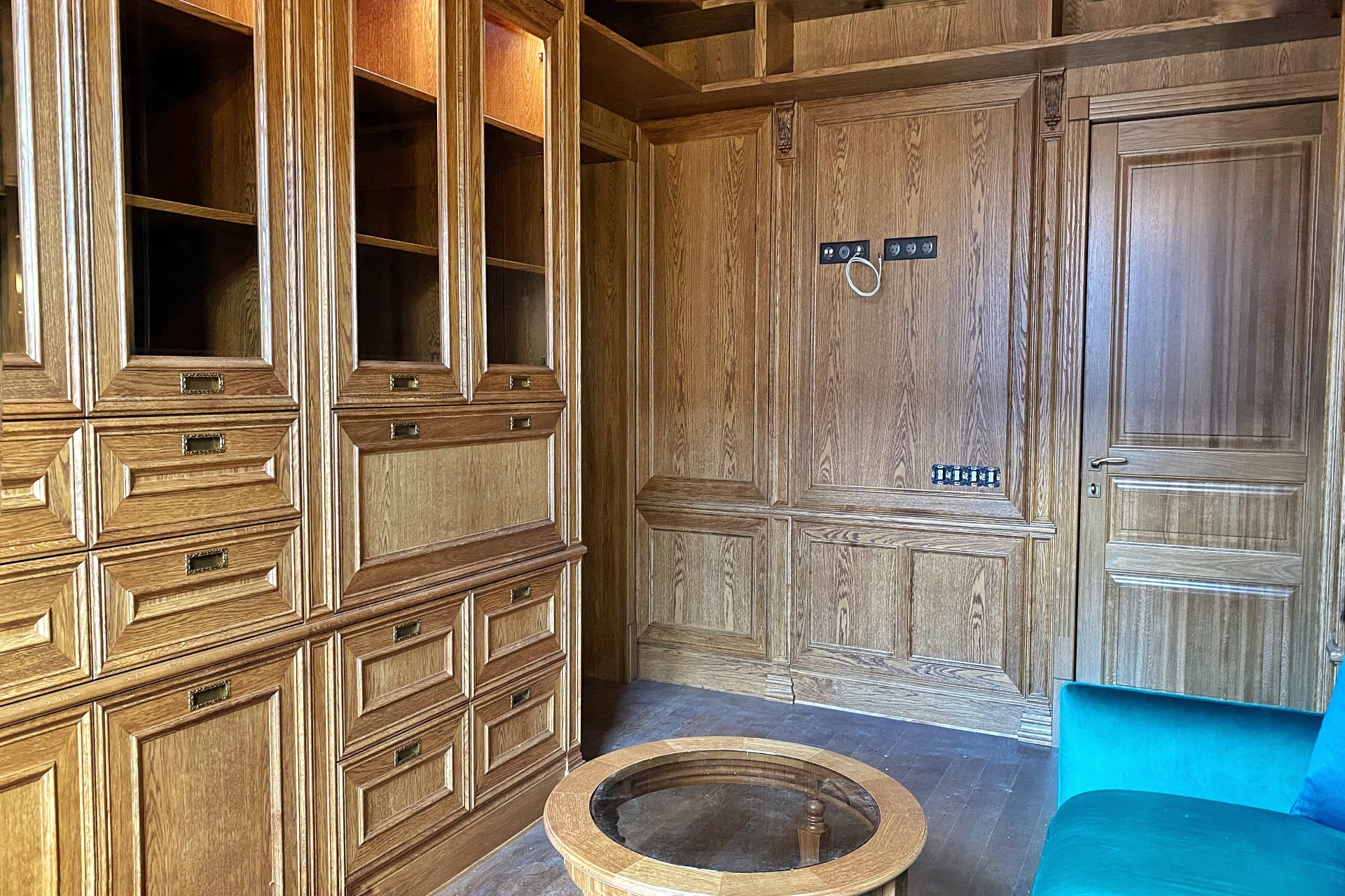 Наша компания занимается изготовлением кабинетов на заказ по авторским проектам с учётом всех пожеланий клиентов. Талантливые дизайнеры фабрики «Кузнецов» создадут лёгкую резную или массивную мебель. Каждый проект разрабатывается с учётом всех пожеланий клиента. При этом учитывается площадь помещения и другая специфика.