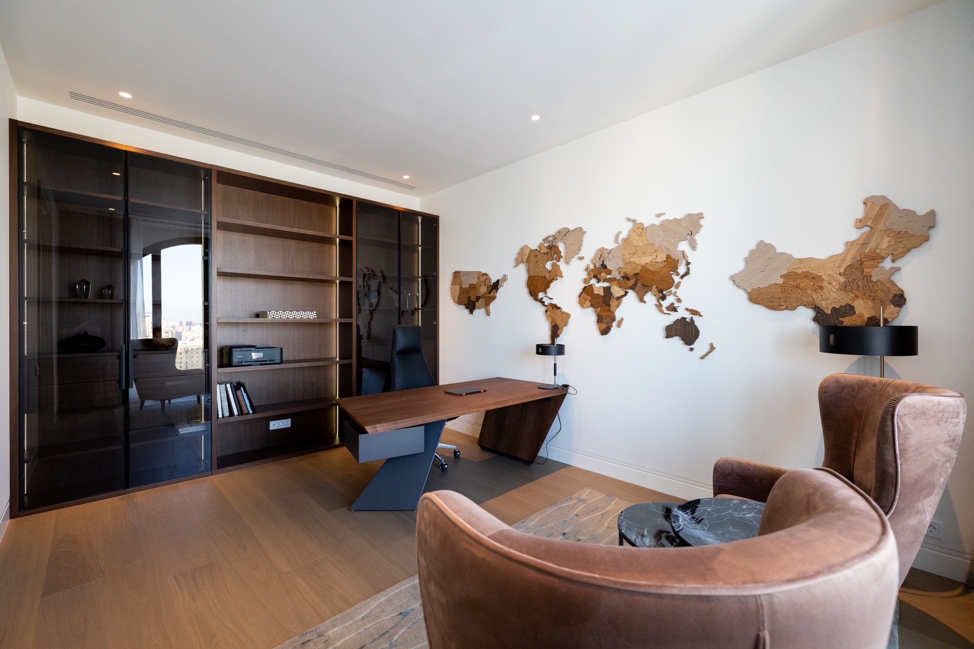 Дизайн личного кабинета необходимо разрабатывать предельно внимательно. В таких помещениях проводятся важные встречи, переговоры и заседания. Поэтому кабинет нужно оформлять с учётом следующих критериев: