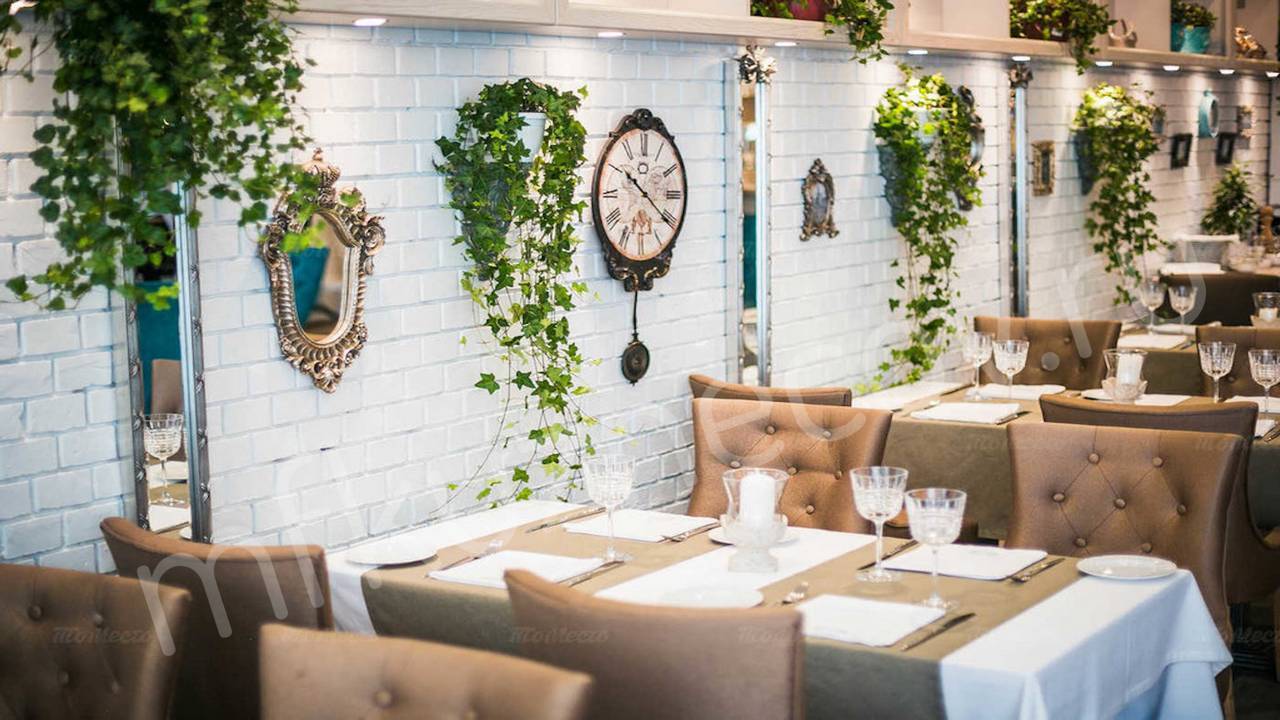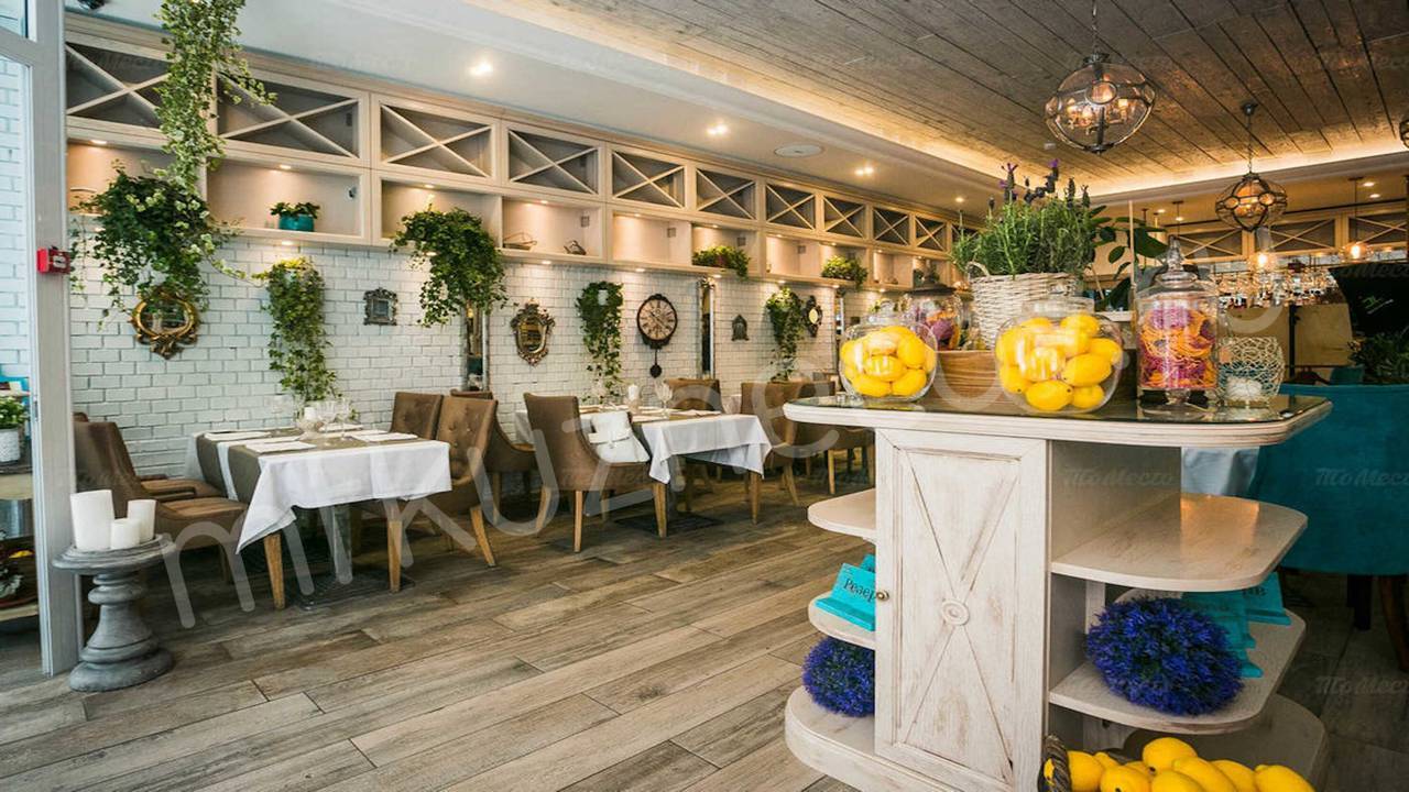 Интерьер кафе отражает Италию: состаренная мебель, зеркала, мягкие оттенки, простота и изыск.